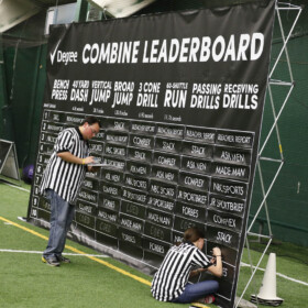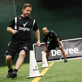 Stage an “NFL Combine for Editors”, featuring spokesperson Hines Ward of the Pittsburgh Steelers. Dolphin Creative worked with our client to brand several “skill stations”, including the 40-yard dash, vertical leap, three-cone drill, and more. Results were posted on an adjustable leaderboard that compared each editor’s results with actual NFL Combine results. The editors were given a Degree Swag Bag that included size-to-fit cleats, performance shorts and shirts, socks, receiver gloves and of course, Degree for Men product.