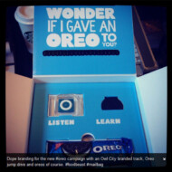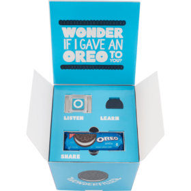 This Impact Mailer, adorned with the cheerful Oreo visual assets, opens to reveal the new brand book. Just underneath, our key influencers are treated to an iPod with the Oreo brand anthem, “Wonderfilled”, a press kit flash drive in the shape of an Oreo cookie, and of course the tasty product itself.