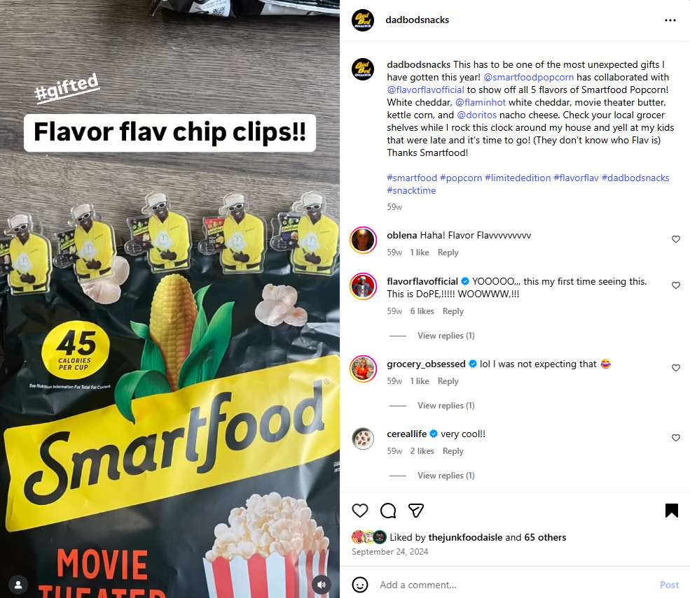 For example, for Smartfood’s Flavor Genie campaign, we didn’t just deliver chip clips. We created custom Flavor Flavclips, creating an unexpected moment of delight and surprise in the brand’s influencer mailers. Even Flavor Falv himself was a fan! A simple chip clip was transformed into a talking point, a smile generator, and a memorable brand experience.
